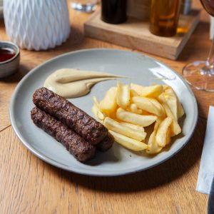 carne de vită, salată coleslaw, rosii, cheddar, cartofi prăjiți și sos thousand island